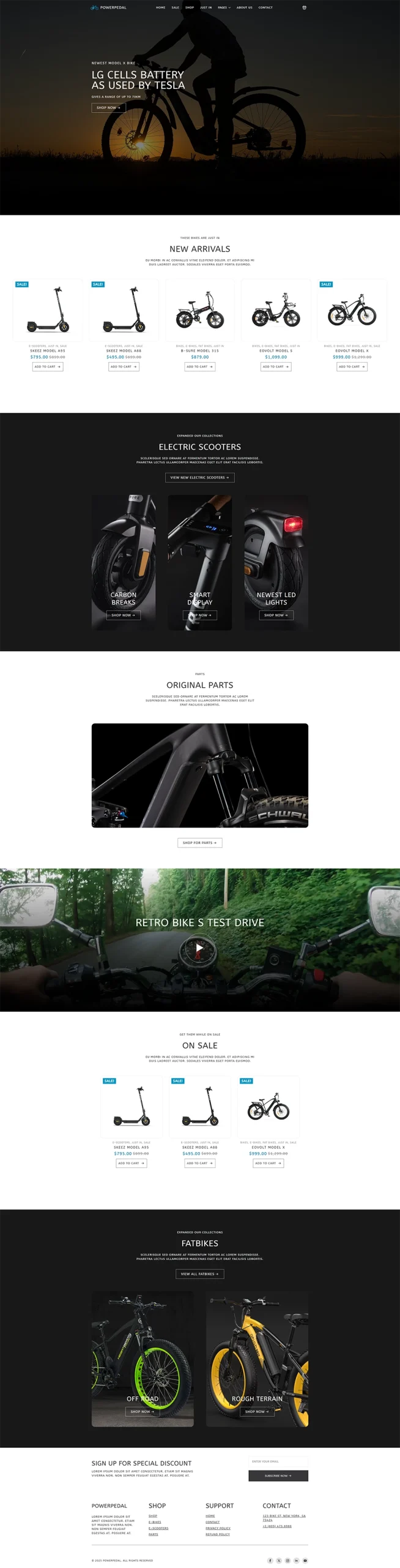 With a fully responsive layout, this E-Bike Shop Template called PowerPedal ensures your E-Commerce website looks stunning on any device, offering an optimized user experience whether viewed on mobile, tablet, or desktop. The template features multiple customizable sections.